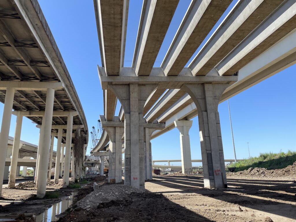 Throughout design and construction, the project team used data-enabled decision-making to balance safety, mobility, public input, and constructability. Three-dimensional modeling informed staging strategies that minimized connector closures and preserved existing lane capacity during each construction phase. Smart work zones deployed intelligent transportation systems (ITS) to provide real-time traffic information to drivers, reducing congestion and improving work zone safety. Substantial hydraulic upgrades, including new detention ponds and upgraded drainage infrastructure, addressed long-standing flood risks.